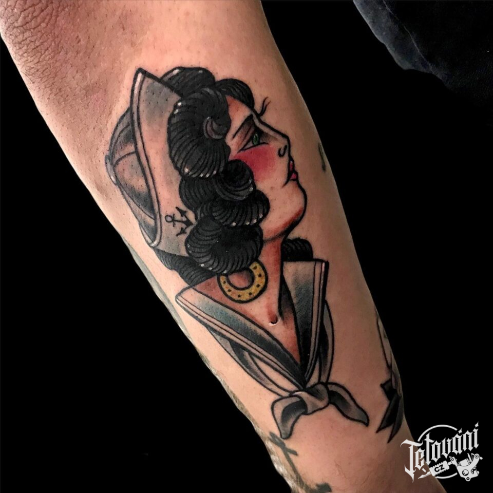 Tetování portrét ženy na předloktí