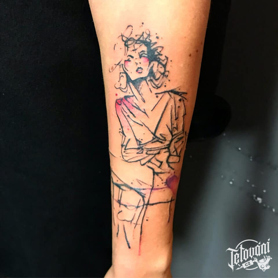 Tetování portrét ženy na předloktí