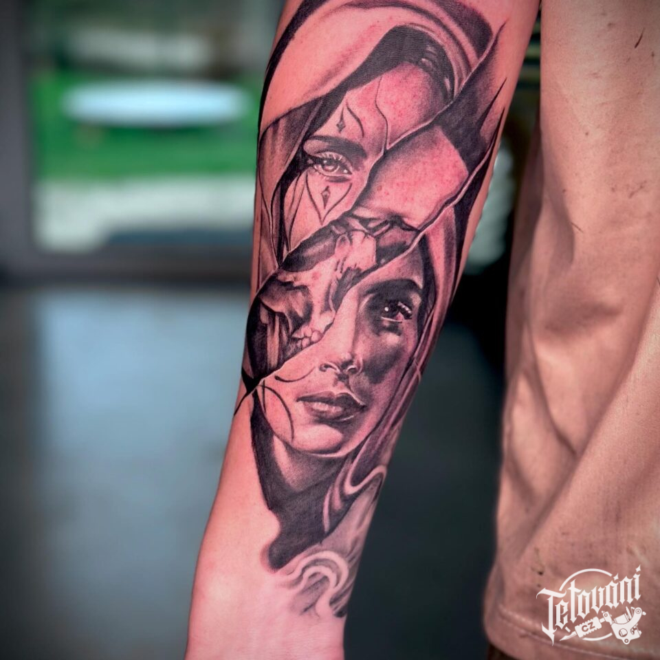 Tetování portrét ženy na předloktí