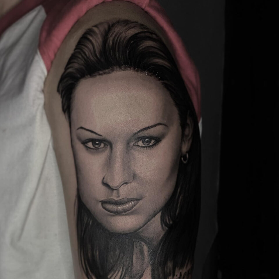 Tetování portrét ženy na rameni