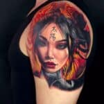 Tetování portrét ženy na rameno