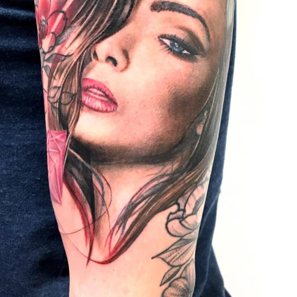 Tetování portrét ženy na rameno