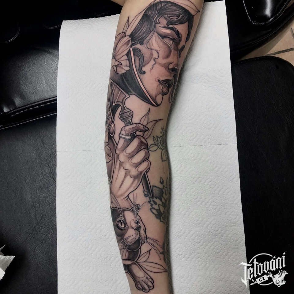 Tetování portrét ženy na ruce