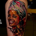 Tetování portrét ženy na stehně