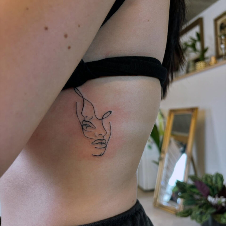 Tetování portrét ženy na žebra