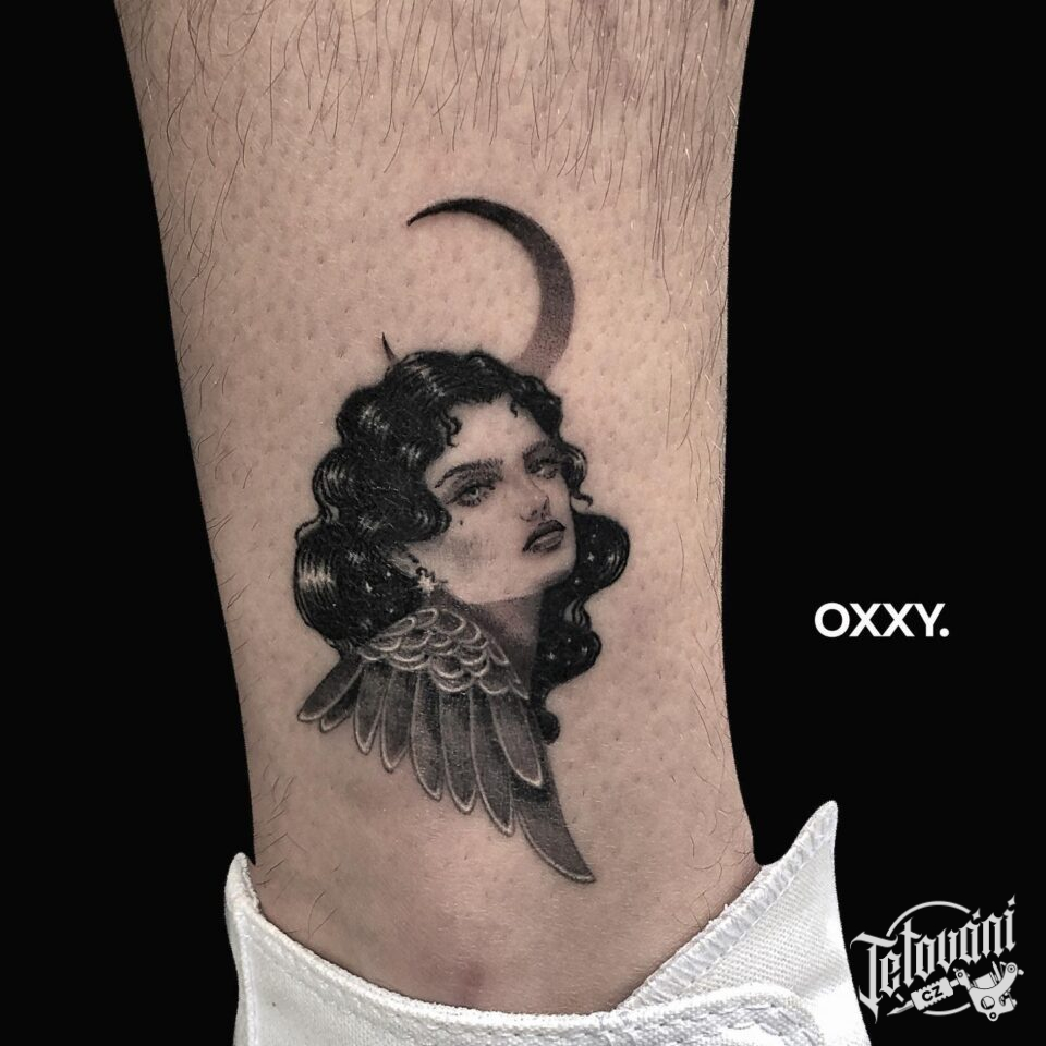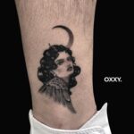 Tetování portrét ženy nad kotníkem