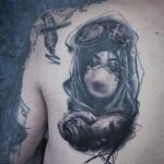 Tetování portrét ženy s maskou na lopatce
