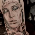 Tetování portrét ženy s růží na stehně a zvířata, ptáci, orli na ruce
