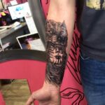 Tetování portrét ženy s vlkem na předloktí