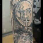 Tetování portrét ženy s vlkem na předloktí