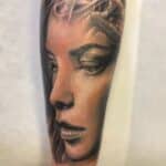 Tetování portrét ženy, symbol lásky, symbol myšlenka na předloktí
