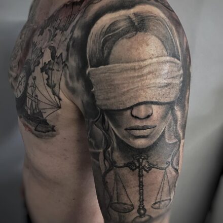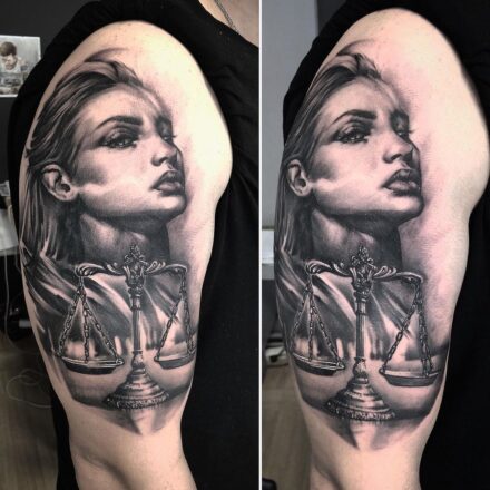 Tetování portrét ženy, Váhy znamení zvěrokruhu na předloktí