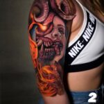 Tetování portrét ženy, znamení zla, ďábel