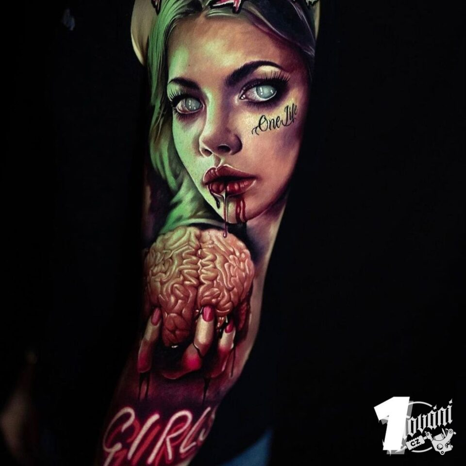 Tetování portrét ženy, znamení zla