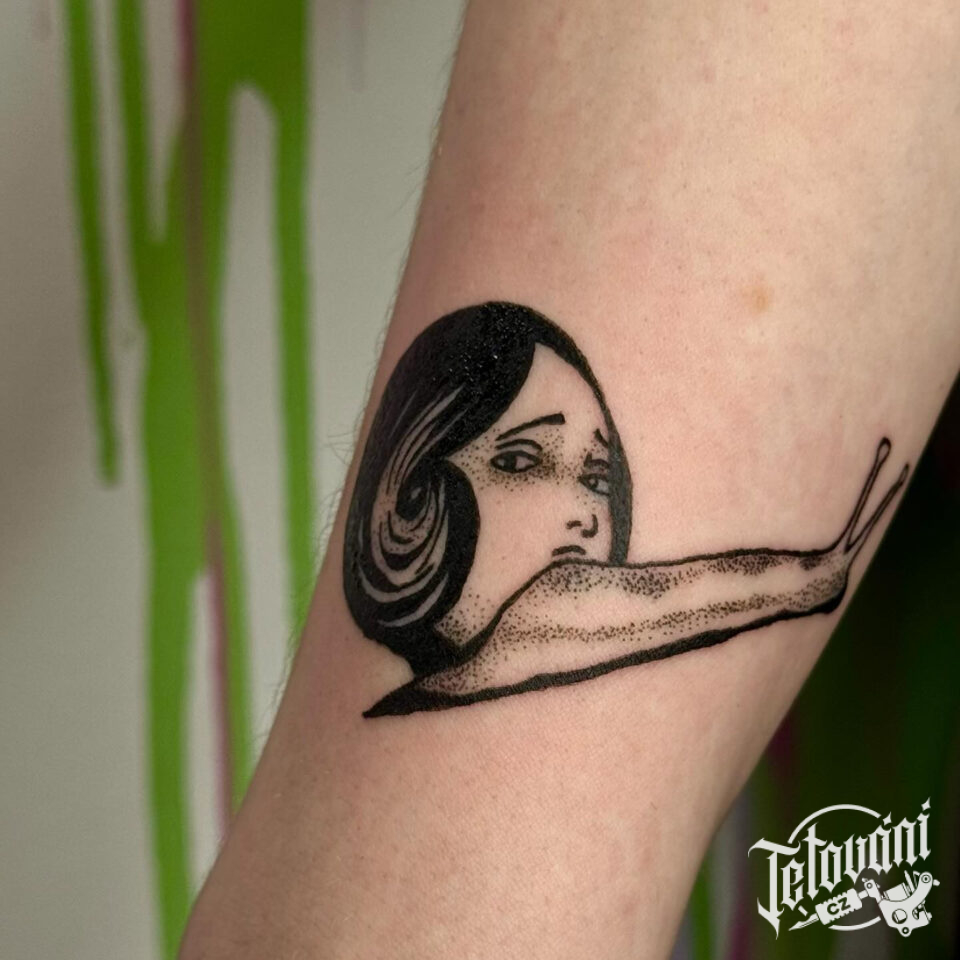 Tetování portrét ženy, zvíře, šnek na předloktí