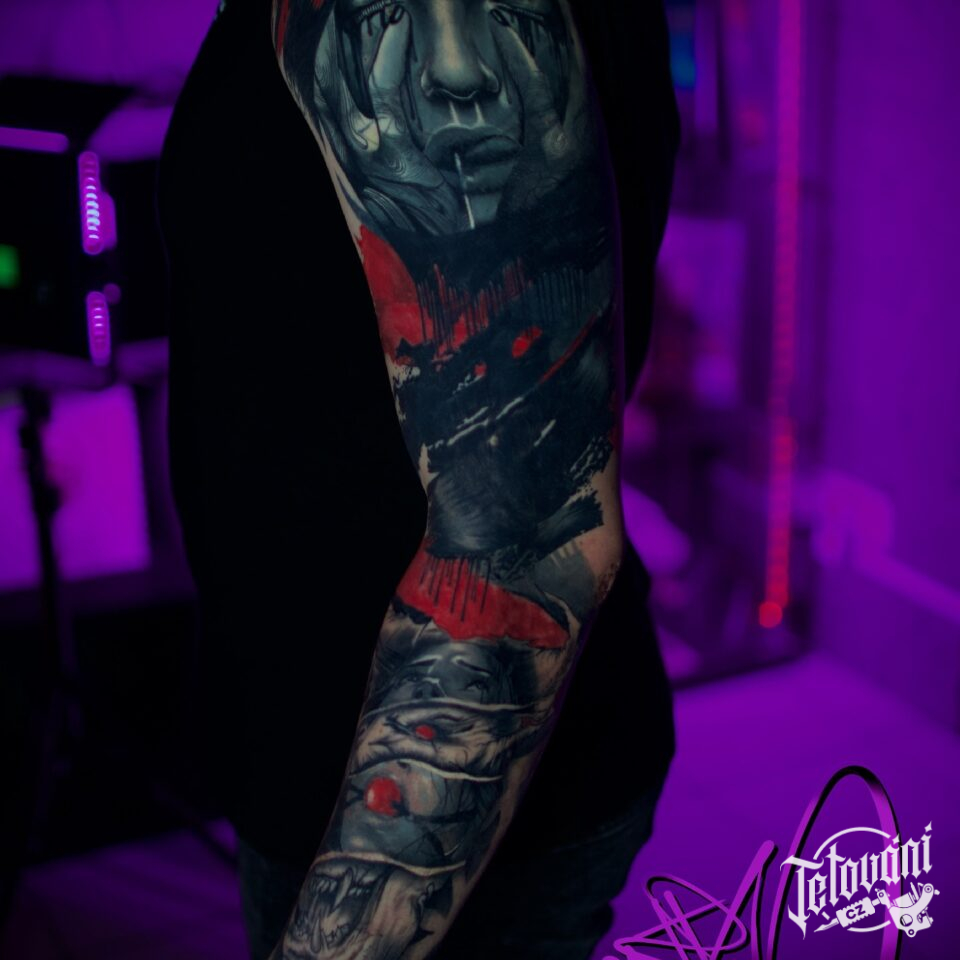 Tetování portrét, znak a symbol smutku na ruku
