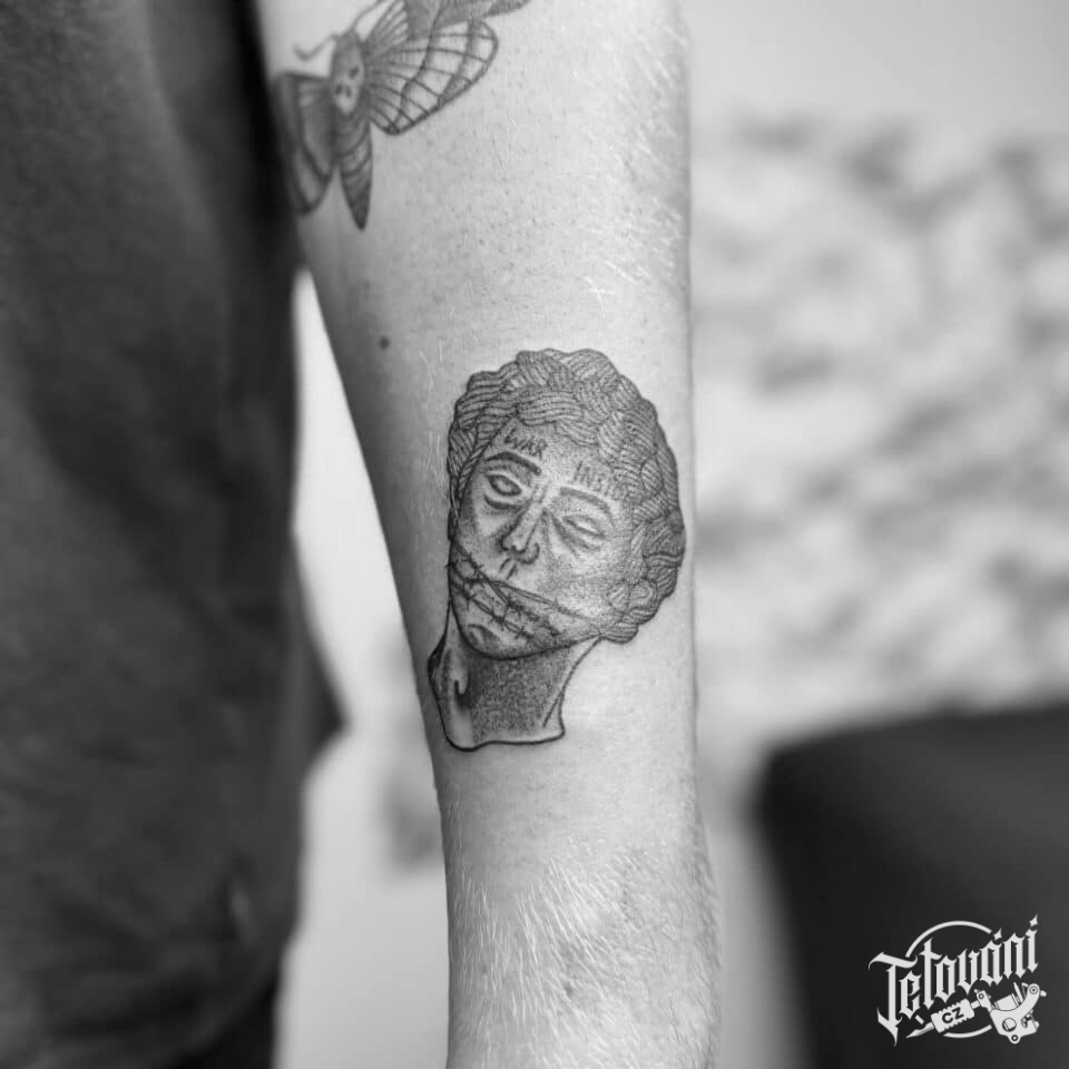 Tetování portrét, znaky a symboly na předloktí