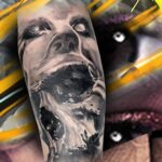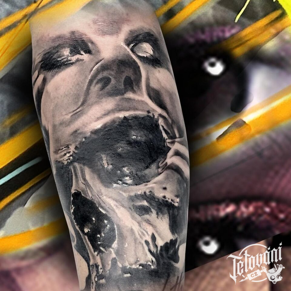 Tetování portrét znamení zla na lýtku