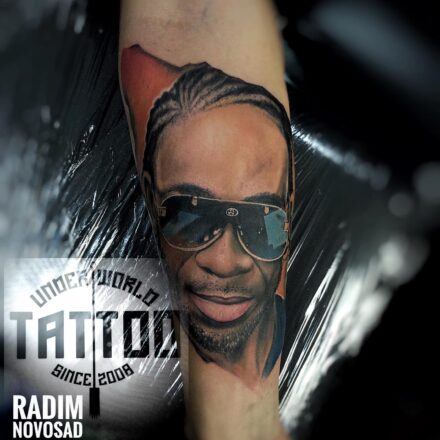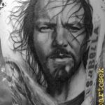 Tetování portrét zpěvák rokové hudby Eddie Vedder na rameno
