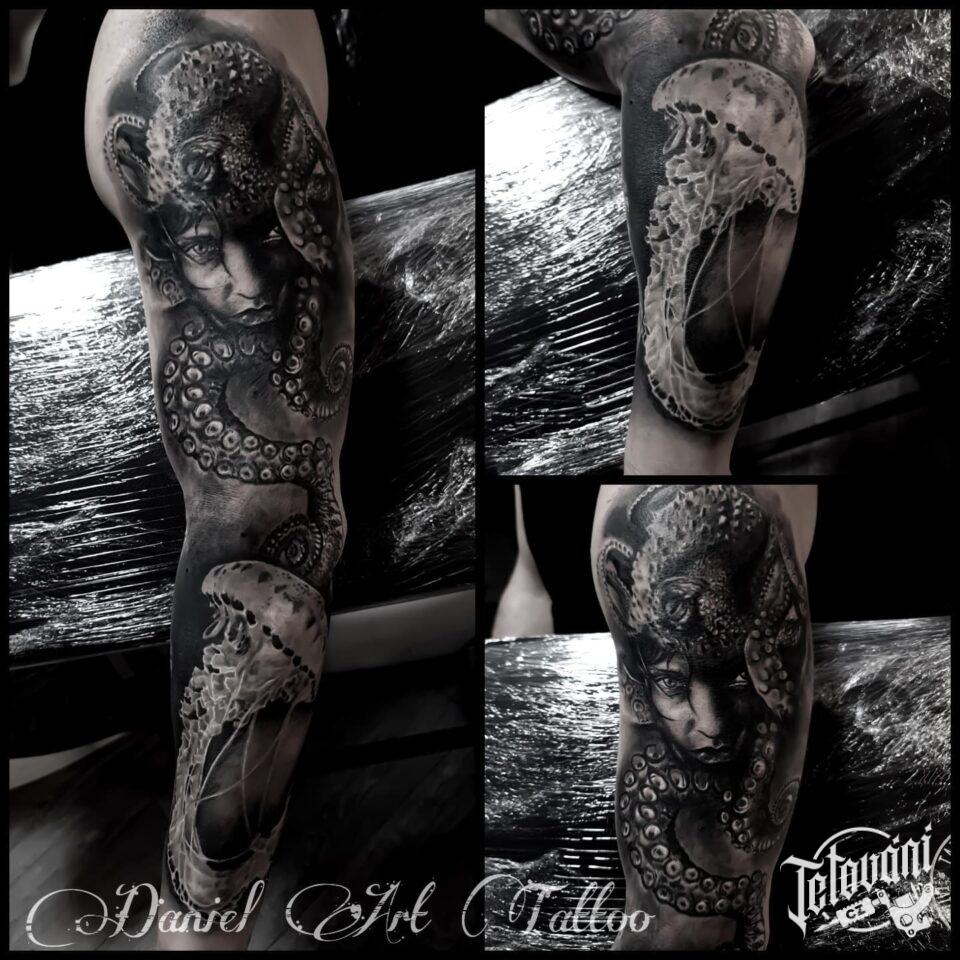 Tetování portrét, zvířata, chobotnice a medúza, rukáv