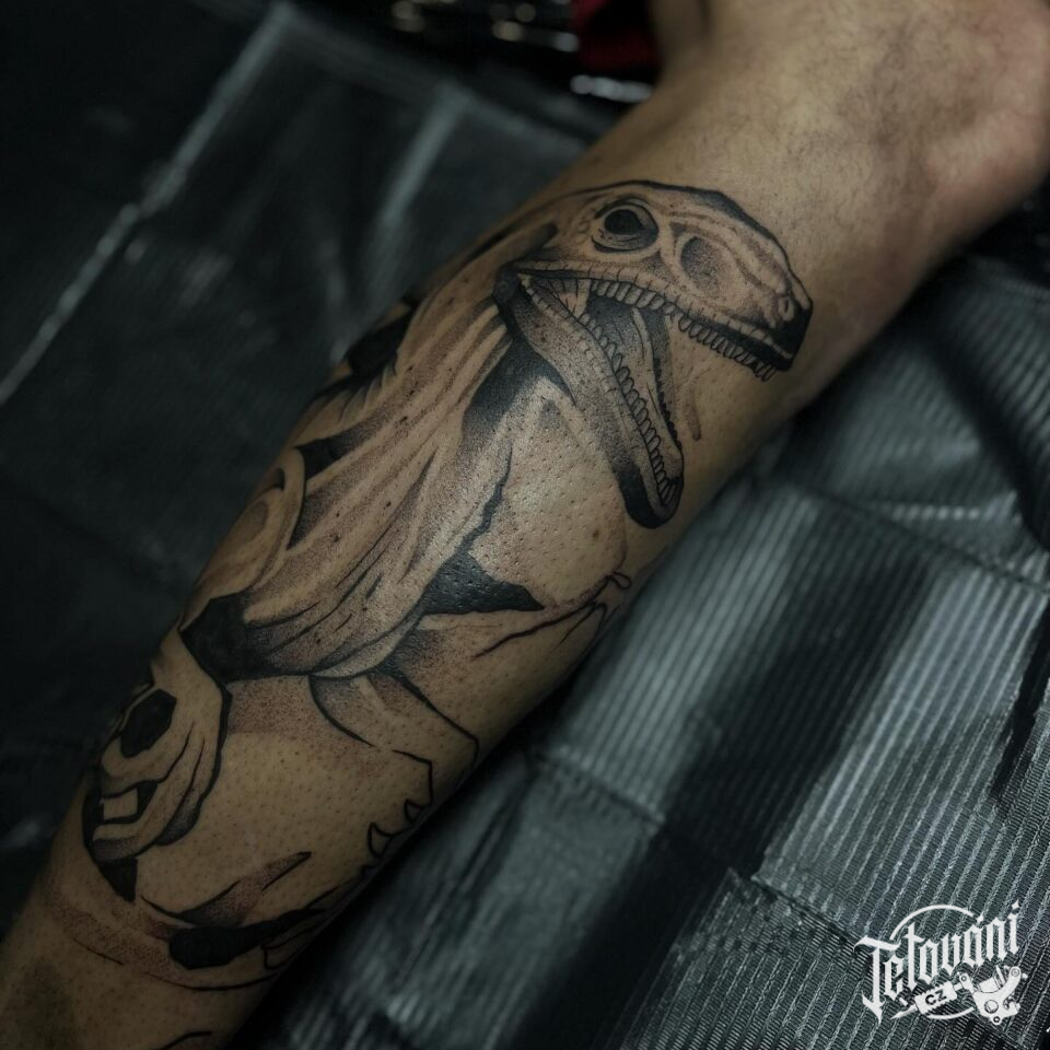 Tetování portrét, zvíře, dinosaurus na lýtko