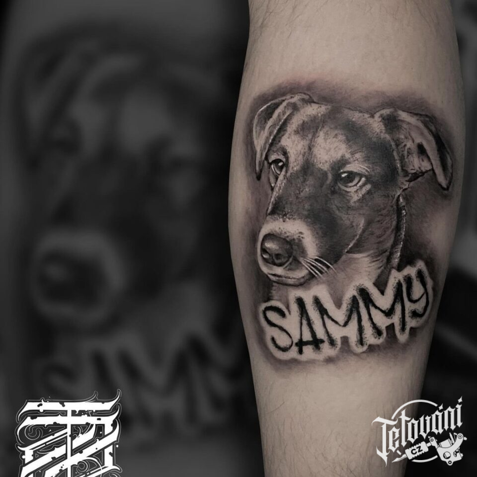 Tetování zvíře, pes na lýtku