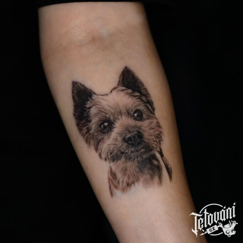 Tetování portrét zvíře pes na předloktí