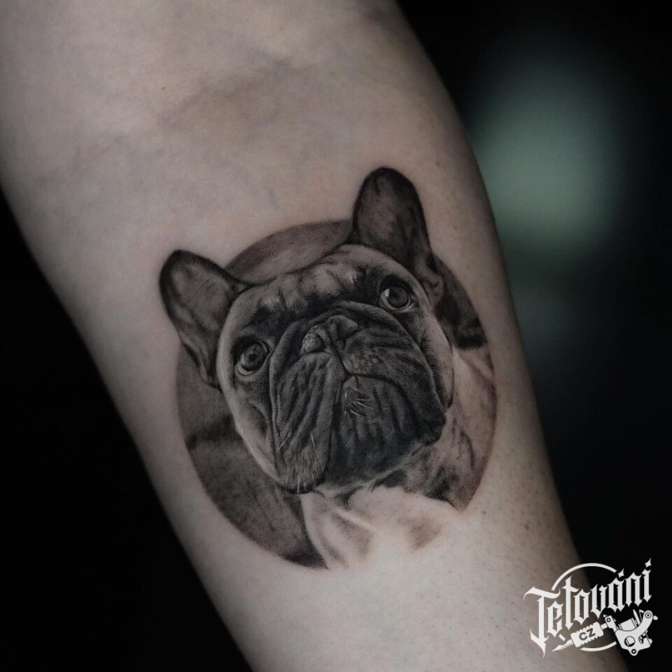 Tetování portrét zvíře pes na předloktí