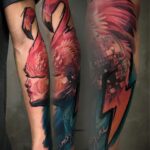 Tetování portrét, zvíře, pták, plameňák na ruce