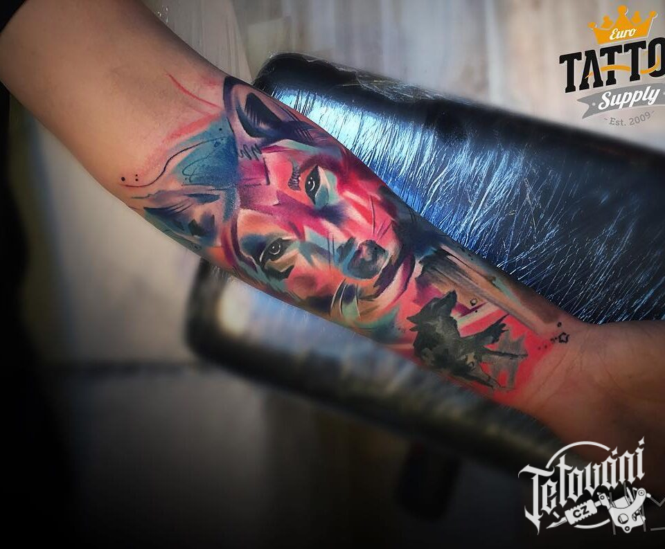 Tetování portrét zvíře vlk na předloktí