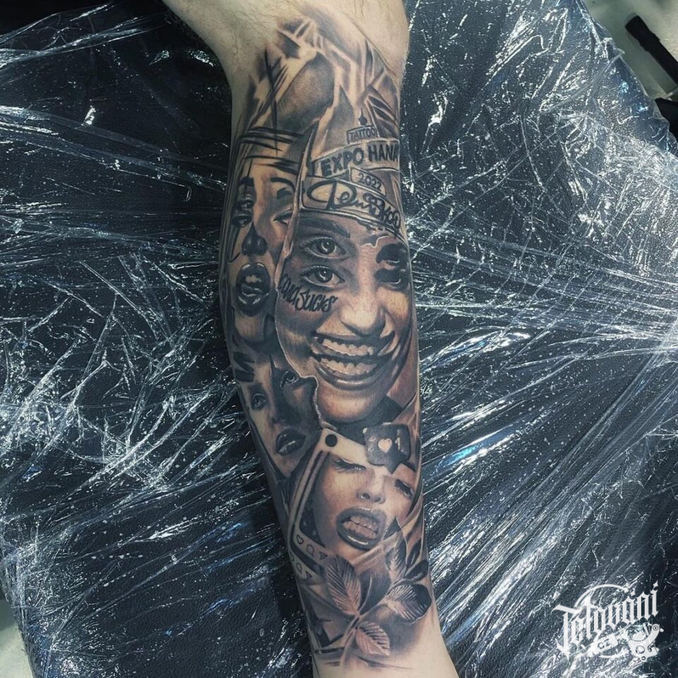 Tetování portrétů na lýtko