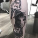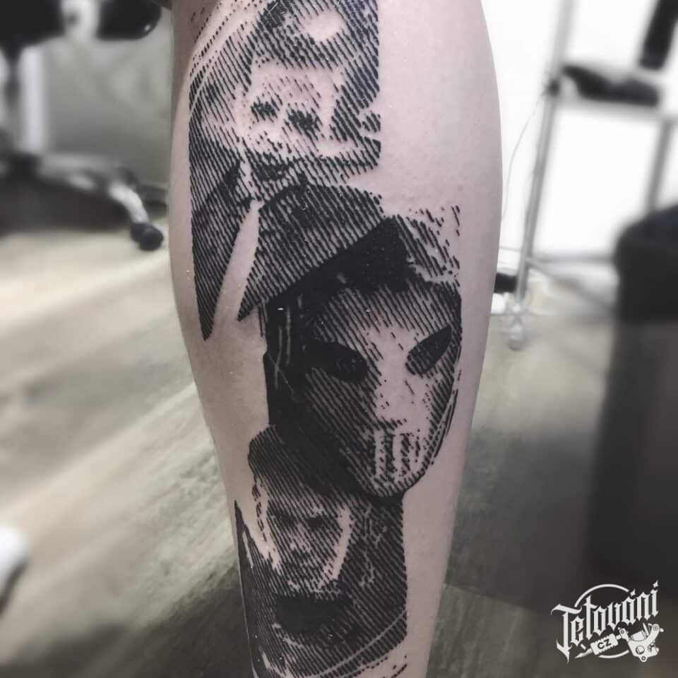 Tetování portréty a maska z filmů a pohádek na lýtko
