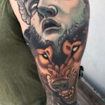 Tetování portréty a zvířata, vlk a had na rukávu