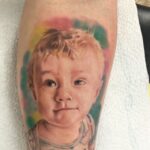 Tetování portréty dětí na lýtku