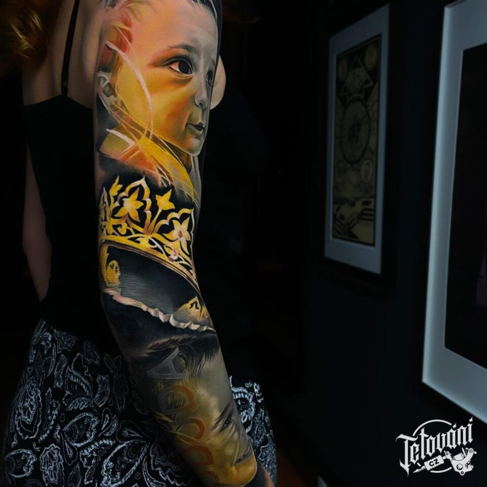 Tetování portréty dětí, rukáv