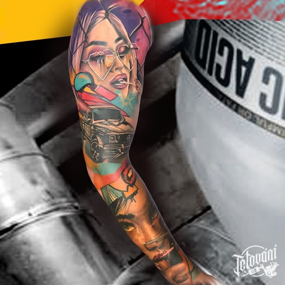 Tetování portréty, dopravní prostředky, auto, rukáv