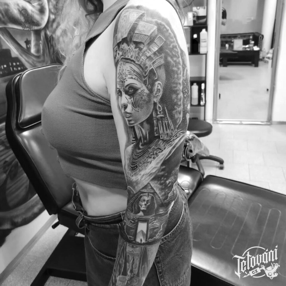 Tetování portréty, egyptské symboly, rukáv