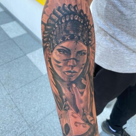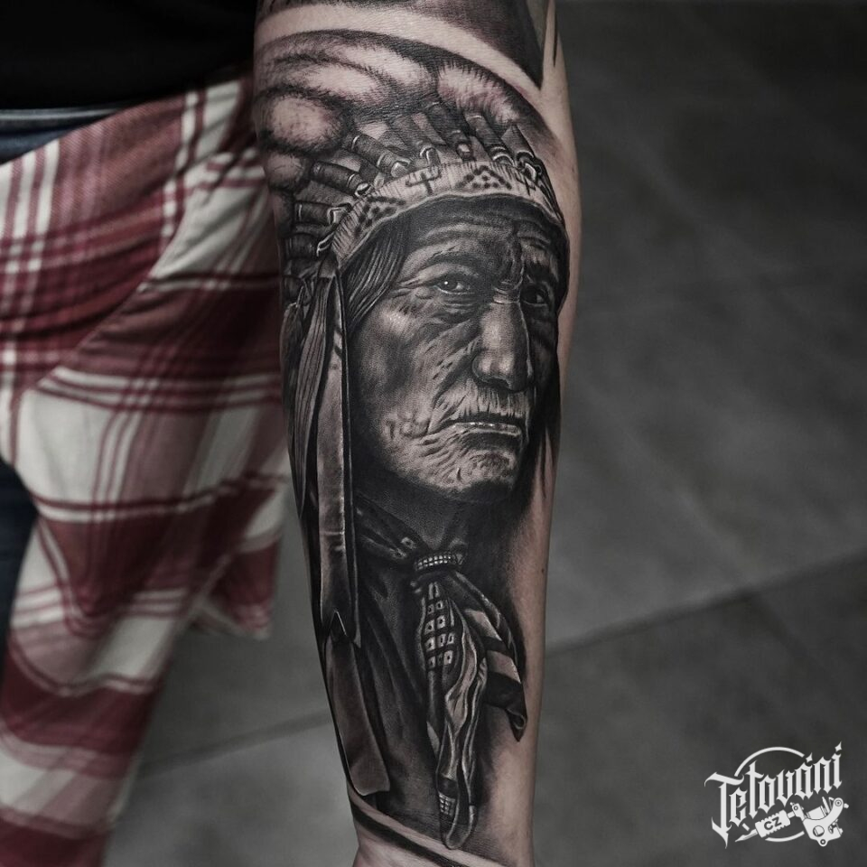 Tetování portréty, indián na předloktí