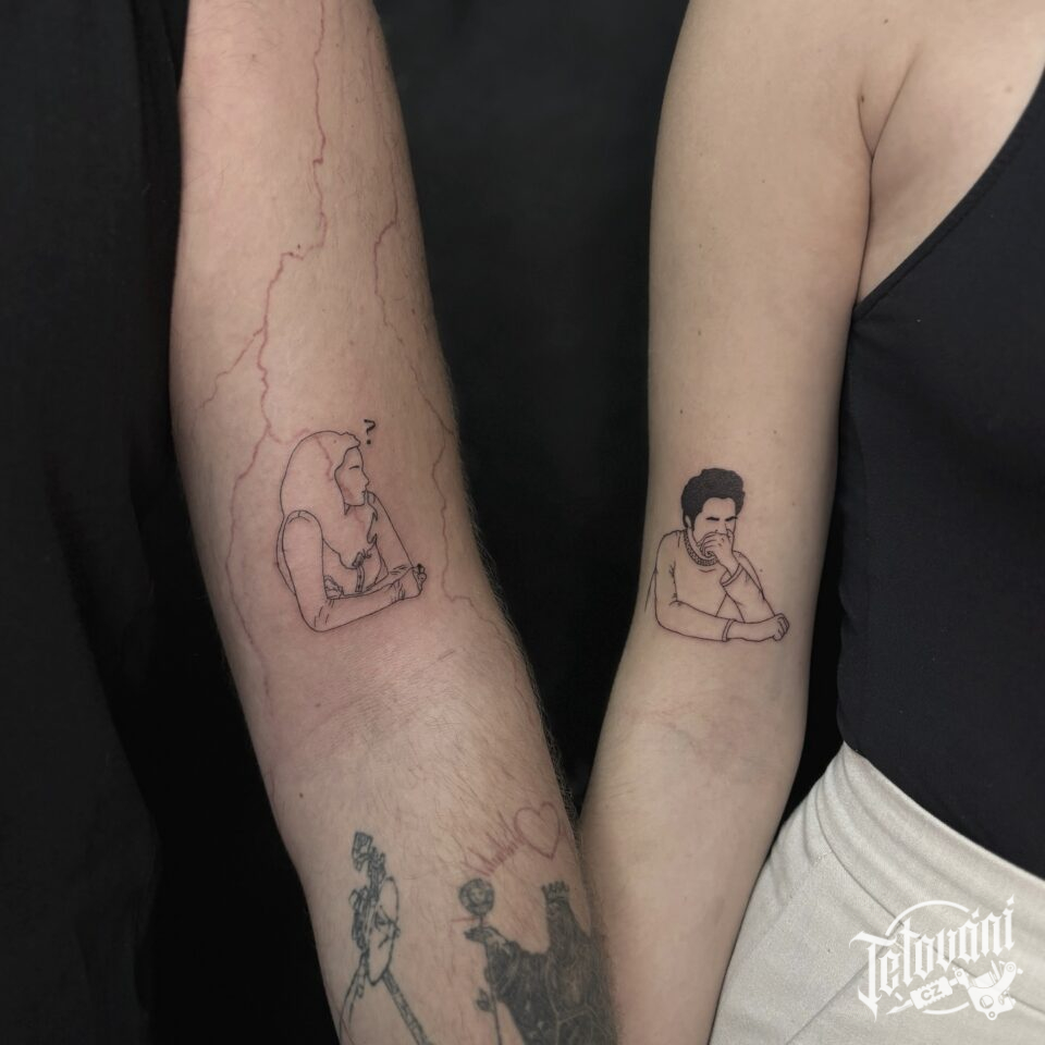 Tetování portréty muže a ženy na ruce