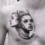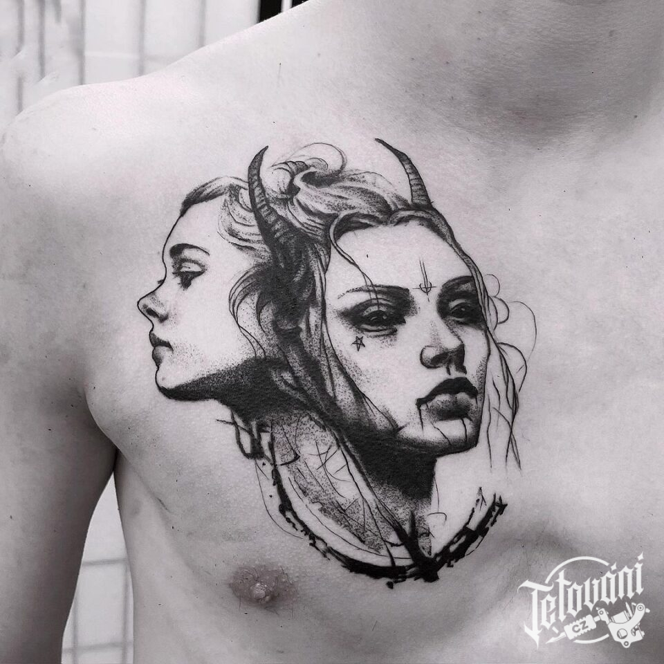 Tetování portréty mýtická bytost na hrudníku