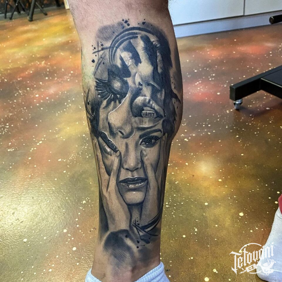 Tetování portréty na lýtku