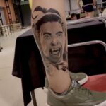 Tetování portréty na lýtku
