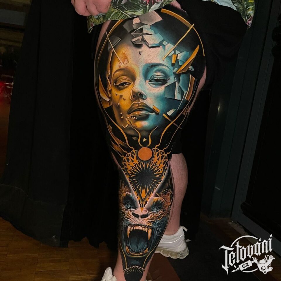 Tetování portréty na noze