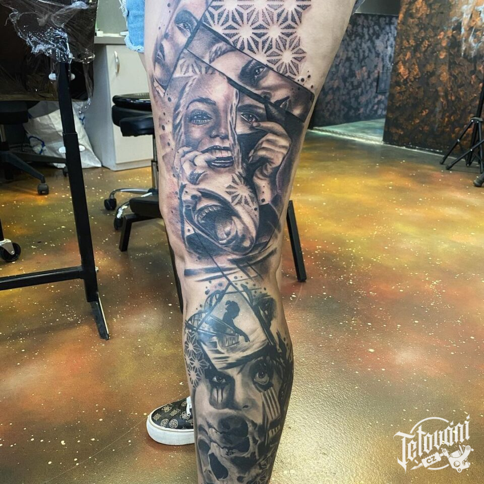 Tetování portréty na noze