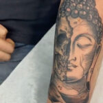 Tetování portréty, lebka, Buddha na předloktí