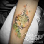 Tetování portréty, ornamenty, věnec, nápis, šíp na předloktí