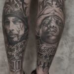 Tetování portréty osobností, Notorious B.I.G a Rest, nápisy na lýtku