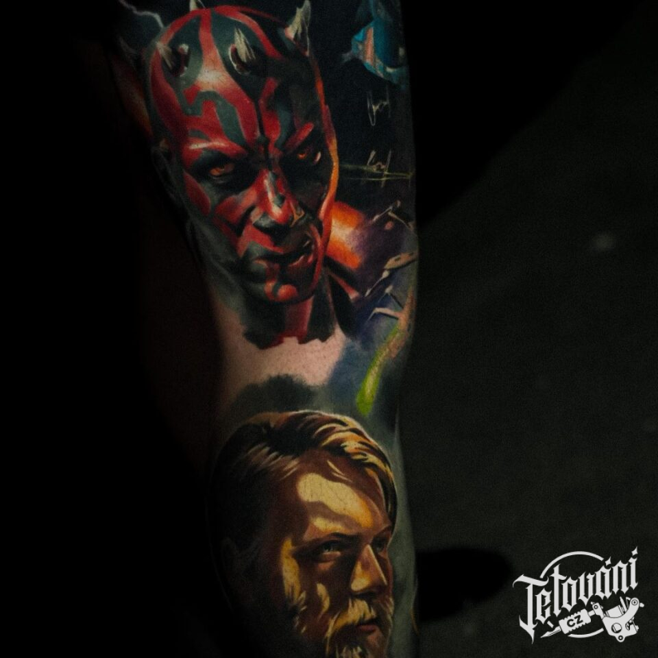 Tetování portréty postav z filmů a pohádek rukáv