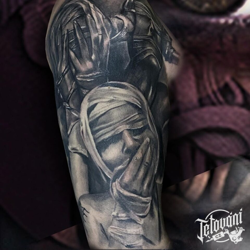 Tetování portréty s rukama na rameni