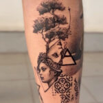 Tetování portréty, strom, tvary, trojúhelník, zvíře, škorpion, štír znamení zvěrokruhu na holeni